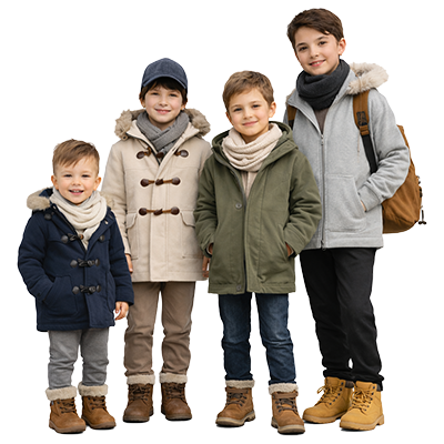 تصميم كاجوال مناسب للمدرسة والخروج، خامة شتوي ناعمة بتوفّر راحة وحرية حركة للطفل،