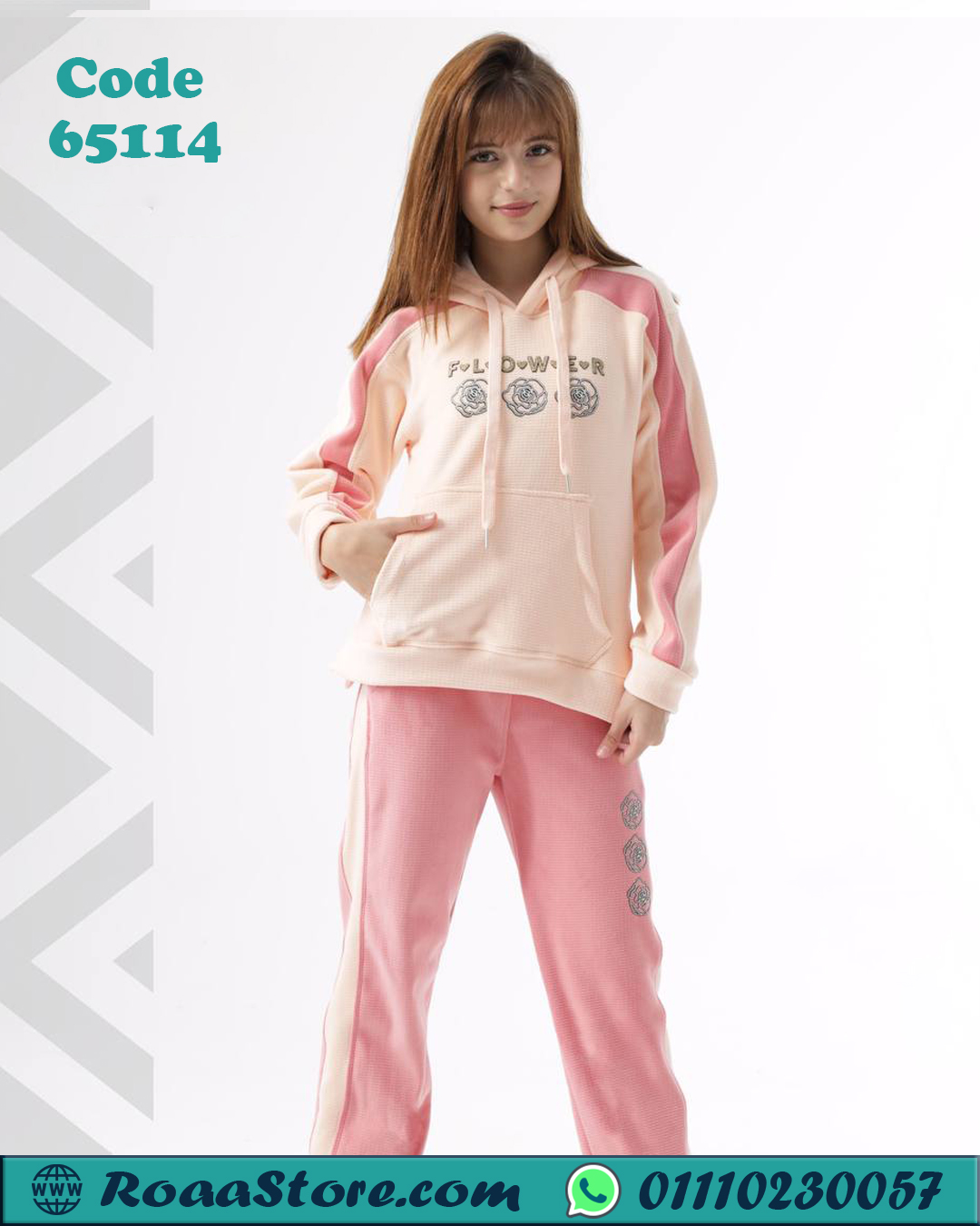 ترنج بناتي شتوي هودي دافي بطباعة ورد – كود 65114