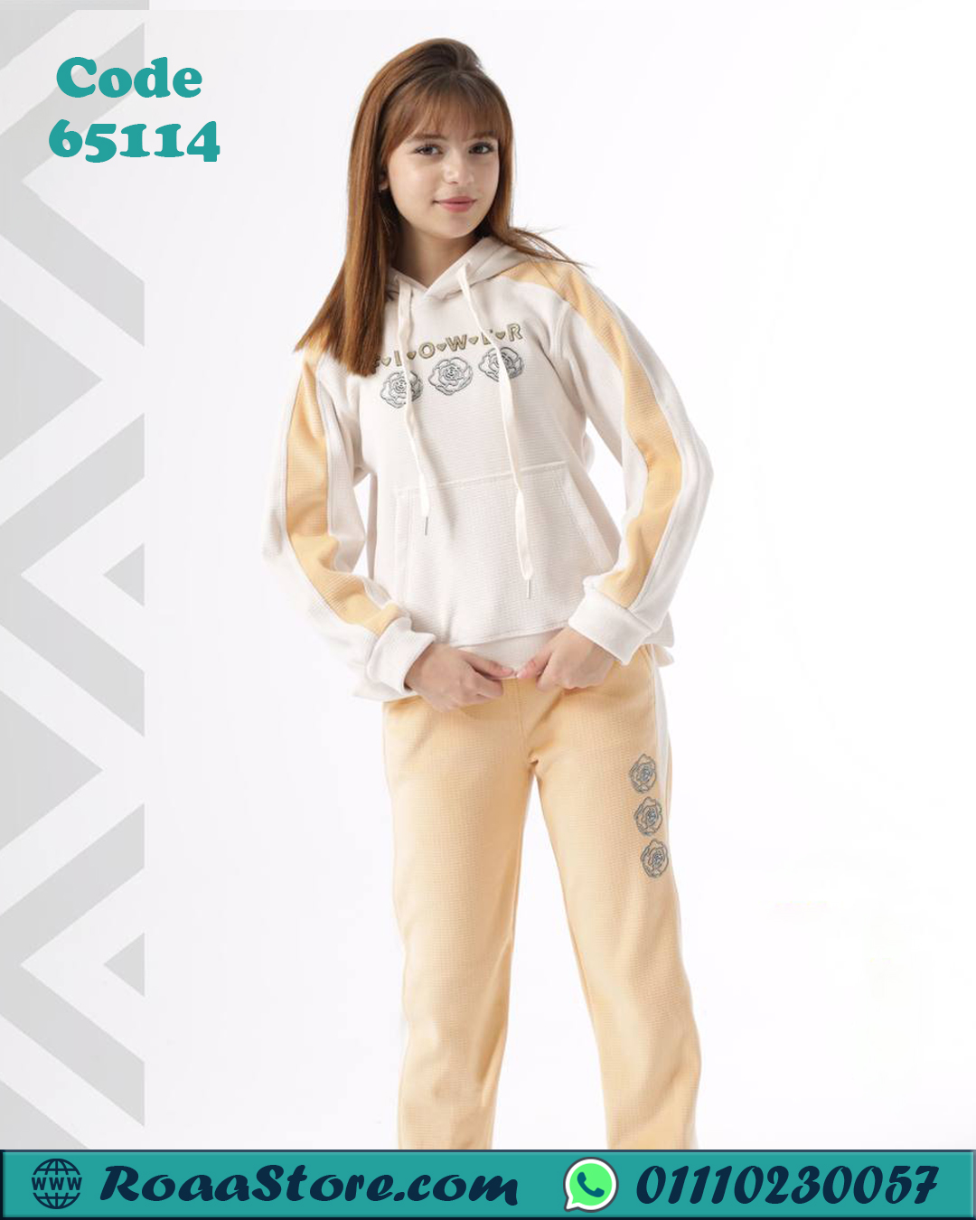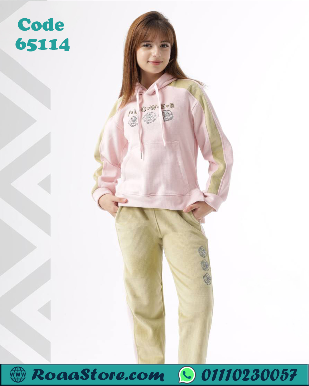 ترنج بناتي شتوي هودي بطباعة Flower – كود 65114