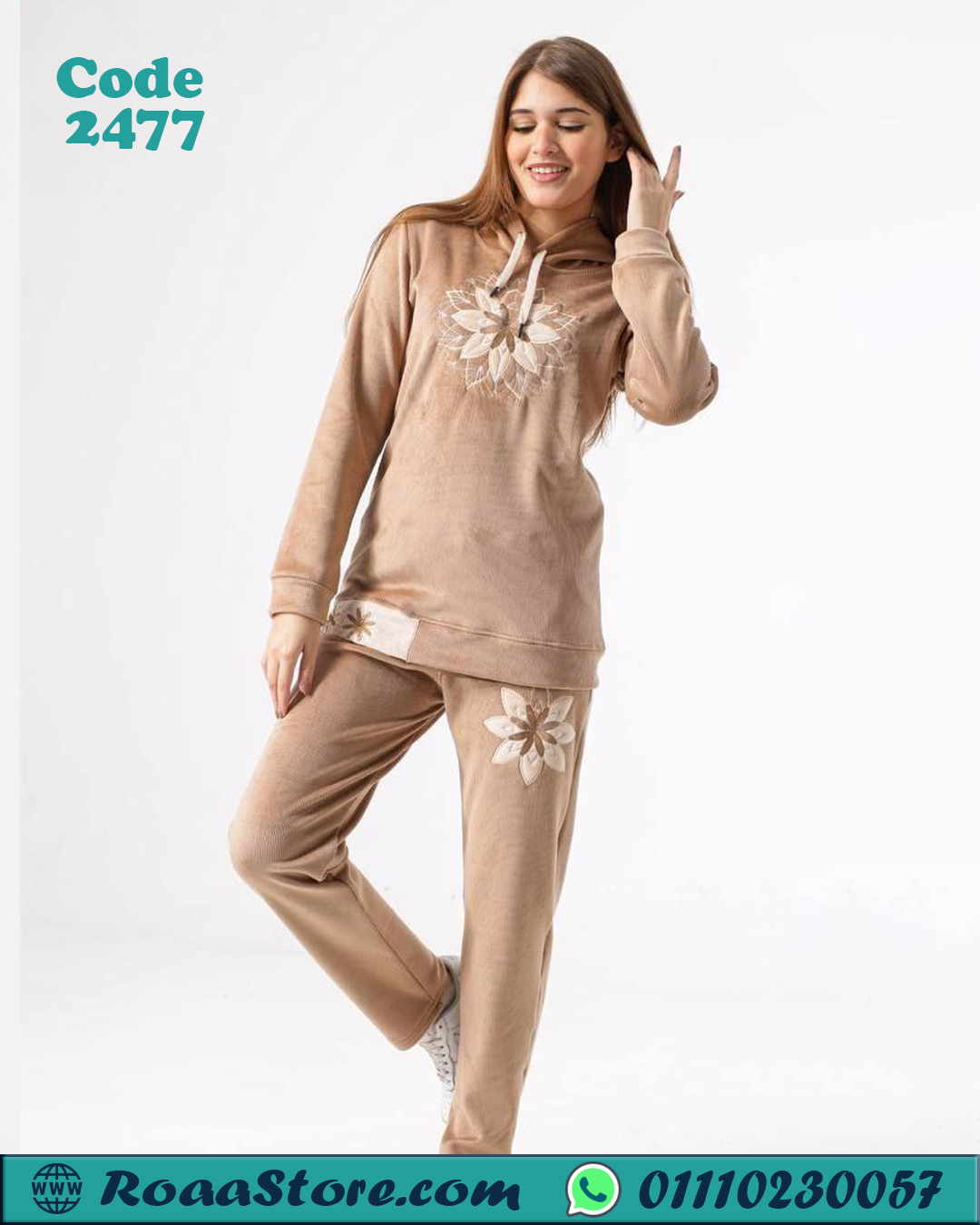 طقم بناتي شتوي هودي قطعتين – كود 2477