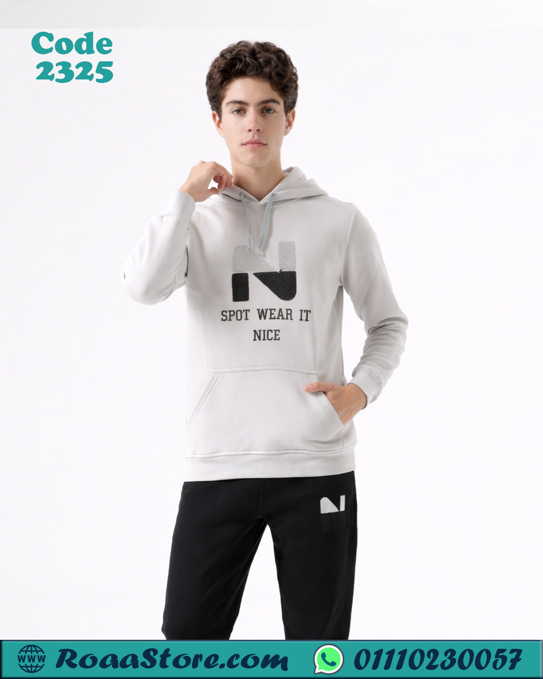 الطقم مكوّن من سويت شيرت بقبعة وبنطلون مريح، مناسب للمدرسة والخروج ويوفّر حرية حركة كاملة للأطفال.